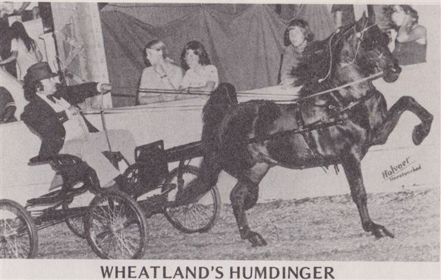 The Dunbars farm at Richardson, Saskatchewan, and got started showing Shetland and Hackney ponies in the 1960s. Gary and Carole competed at the shows in Manitoba, Saskatchewan, Iowa and Minnesota. John Voth helped with the showing and training. Gary also enjoyed showing a Road horse that won many classes. Many of the Dunbar bred ponies, sired by Wheatland Humdinger became great show ponies, Highly Explosive went on the be World Champion Harness Pony. Looking through the pedigrees of the Heartland ponies you will find Wheatland's Humdinger appearing many times. His outstanding motion and desire was passed on to his offspring. Having acheived the goal of developing one of the finest ponies in the breed, Gary and Carole moved away from Hackneys and began a stable of Standardbreds that they raced in Western Canada. This venture also was a success, racing home bred horses in Sires Stake races in Manitoba and Saskatchewan. In an interview with Gary about a certain young race horse that was a top stake colt, the record time was discussed, the money made was mentioned, the many races won. To Gary, this was indeed a great achievement, yet his comment was nothing could compare with breeding and showing a world champion hackney.
