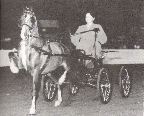 This little bay longtail pony trimmed in white was foaled at the farm of Leslie Gunby, Lynden, Ontario in 1972. Sired by Cassilis High Flyer, and out of King's Jenny Lynn, he was an attractive young pony that caught the attention of William Gilligan, St. Catharines. Gilbert Fairies followed as owner, and sent the pony to Art Alderman for his first lessons. After making his debut in harness, ownership was transfered to Paul McVittie, Essex, Ontario, where he was shown by Mark Annett to wins in Toronto, London and many shows in between. He was paired with Windy Hill Kings Joni and won many pair and tandem classes as well. In 1982, Duane Miller bought Flyer's Sensation and placed him with Dave Smith to exhibit. The winning continued with victorys including the Harness Pony championship at the 1983 and 1984 Royal Winter Fairs. Mr. and Mrs Fred Olisky from Massachusetts bought Flyers Sensation from the Miller Stables in 1985 and exhibited him at shows in the north east US. He is remembered as one of the top harness ponies to be shown in Canada. (inducted April 2011) |