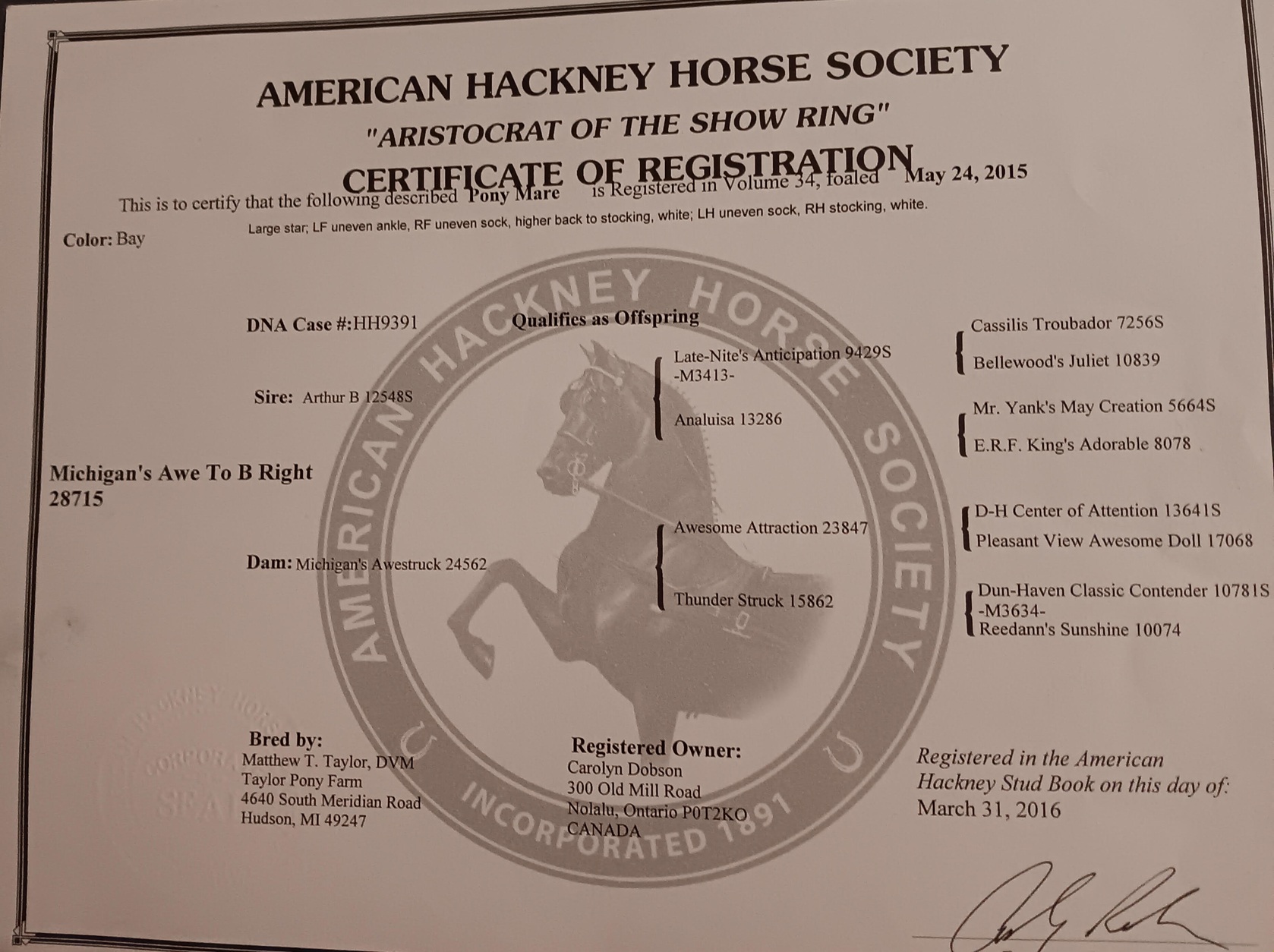 Merv & Carolyn Dobson Nolalu On Ph 807-475-8147 Email 7prettyponies@gmail.com